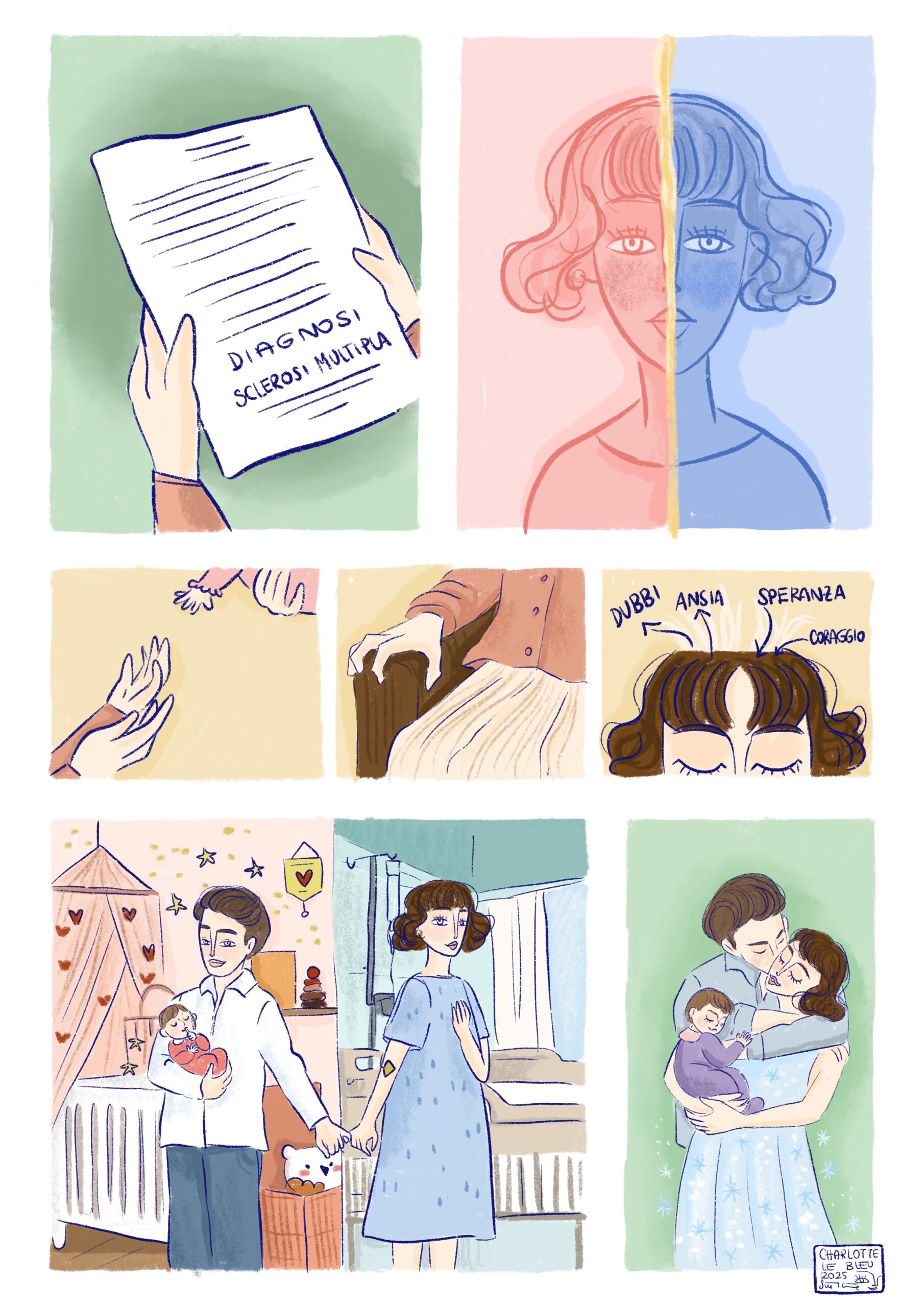 Mi chiamo Lucretia, ho la sclerosi multipla recidivante remittente e da aprile 2016 sono stata curata con una terapia che mi ha accompagnata per diverso tempo. Per otto anni in ospedale mi aspettavano le flebo. Insieme a loro avrei incontrato un gruppo di amici: cinque pazienti che, insieme a infermieri e medici, hanno sempre reso quel momento speciale. Come un appuntamento al bar, per bere un caffè insieme. Un caffè che sarebbe durato un po’ di ore e avrebbe lasciato qualche strascico il pomeriggio, ma con un valore inestimabile. A gennaio 2024 ho ricevuto la notizia che avrei dovuto cambiare terapia. In quel momento alla malinconia si aggiungevano il timore per il primo cambio di terapia dopo la diagnosi e per il primo ritorno ai boli di cortisone.